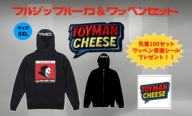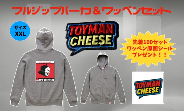 *このページはセット販売XXLサイズの販売ページになります* *北海道、沖縄地区への発送は別途送料1,000円がかかります* *その他地区への発送は送料0円で表示されます* **1月22日以降での発送となります** LOW-COST CLUB Mr.Install と、 TMCI (ToyMan Cheese Inc)ロゴの 裏起毛フルジップパーカと トイマンチーズロゴワッペンセットです。 先着100セットに限り、 ロゴワッペン原画シールを1枚プレゼント!! *全色全サイズ合計100セットになり次第 終了とさせていただきます。 【フルジップパーカ】 裏起毛×フルジップは、冬シーズン最強! 着脱が容易なフルジップタイプは、 屋内外のアウターとして重宝します! 裏地はふかふかで保温性の高い裏起毛にしながら、 T/C(綿×ポリエステル)の生地にすることで 軽くて丈夫なスウェットに仕上げました。 綿 52%、ポリエステル 48% 裏起毛(表糸:綿 100%) ※ファスナーはシングルスライダー ※フードひもは丸ひも身頃同色 【ロゴワッペン】 お好きな場所に貼り付けてカスタマイズが楽しめます。 ※サイズ:約縦5cm×横6.6cm ※画像はイメージです。実際の商品とは異なる場合があります ※アイロンワッペン単体商品です。 ※熱による圧着という接着方法のため、熱に弱い生地への接着は不向きです。 発送方法:ゆうパックもしくは宅配便にて発送いたします。 *北海道、沖縄地区への発送は別途送料1,000円がかかります。 *複数購入の場合:出来る限りまとめて発送いたします。 *時間指定、日にち指定などの設定はございませんのでご了承ください。 *発送先住所記載不備や、受取不在による保管期限切れなどの 再発送につきましては、別途個別再発送料金を申し受けますので予めご了承下さい。