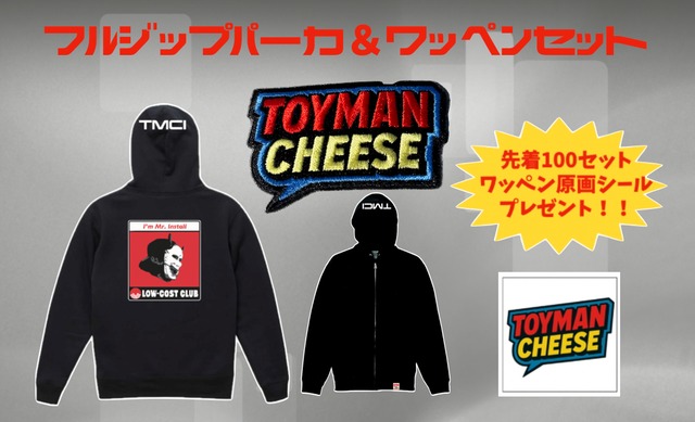 *このページはセット販売S〜XLサイズの販売ページになります* *北海道、沖縄地区への発送は別途送料1,000円がかかります* *その他地区への発送は送料0円で表示されます* **1月22日以降での発送となります** LOW-COST CLUB Mr.Install と、 TMCI (ToyMan Cheese Inc)ロゴの 裏起毛フルジップパーカと トイマンチーズロゴワッペンセットです。 先着100セットに限り、 ロゴワッペン原画シールを1枚プレゼント!! *全色全サイズ合計100セットになり次第 終了とさせていただきます。 【フルジップパーカ】 裏起毛×フルジップは、冬シーズン最強! 着脱が容易なフルジップタイプは、 屋内外のアウターとして重宝します! 裏地はふかふかで保温性の高い裏起毛にしながら、 T/C(綿×ポリエステル)の生地にすることで 軽くて丈夫なスウェットに仕上げました。 綿 52%、ポリエステル 48% 裏起毛(表糸:綿 100%) ※ファスナーはシングルスライダー ※フードひもは丸ひも身頃同色 【ロゴワッペン】 お好きな場所に貼り付けてカスタマイズが楽しめます。 ※サイズ:約縦5cm×横6.6cm ※画像はイメージです。実際の商品とは異なる場合があります ※アイロンワッペン単体商品です。 ※熱による圧着という接着方法のため、熱に弱い生地への接着は不向きです。 発送方法:ゆうパックもしくは宅配便にて発送いたします。 *北海道、沖縄地区への発送は別途送料1,000円がかかります。 *複数購入の場合:出来る限りまとめて発送いたします。 *時間指定、日にち指定などの設定はございませんのでご了承ください。 *発送先住所記載不備や、受取不在による保管期限切れなどの 再発送につきましては、別途個別再発送料金を申し受けますので予めご了承下さい。
